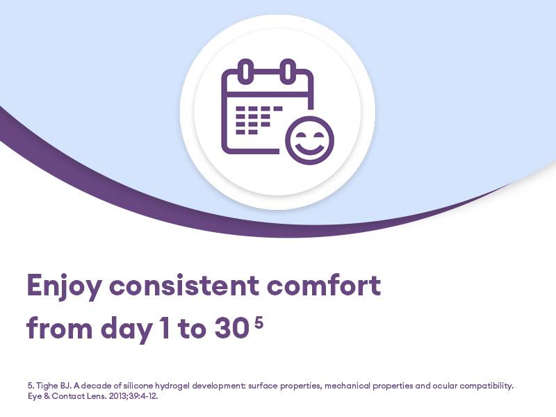 comfort for a wearing period of 30 days. This is accomplished via