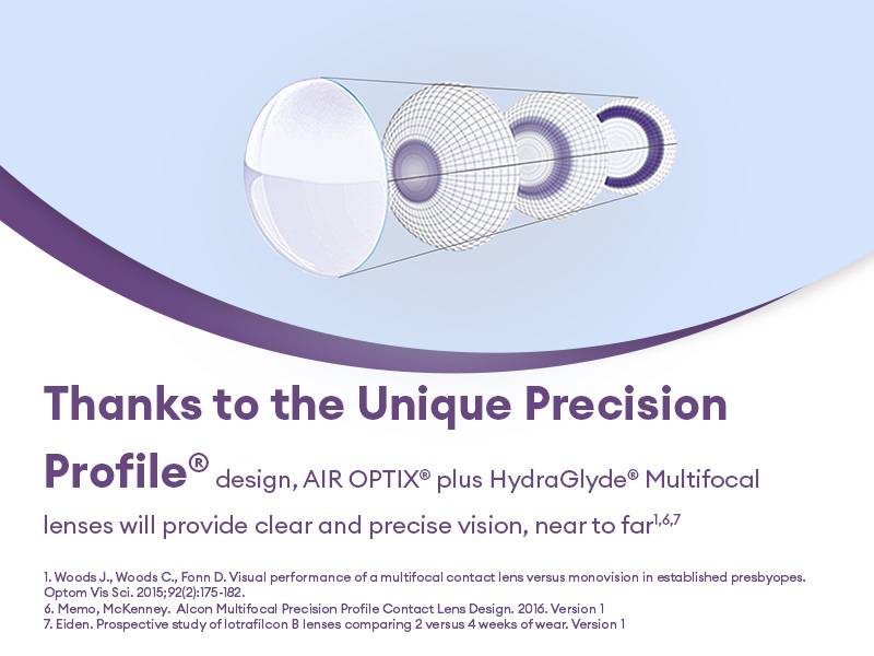 Air Optix plus HydraGlyde Multifocal are designed to